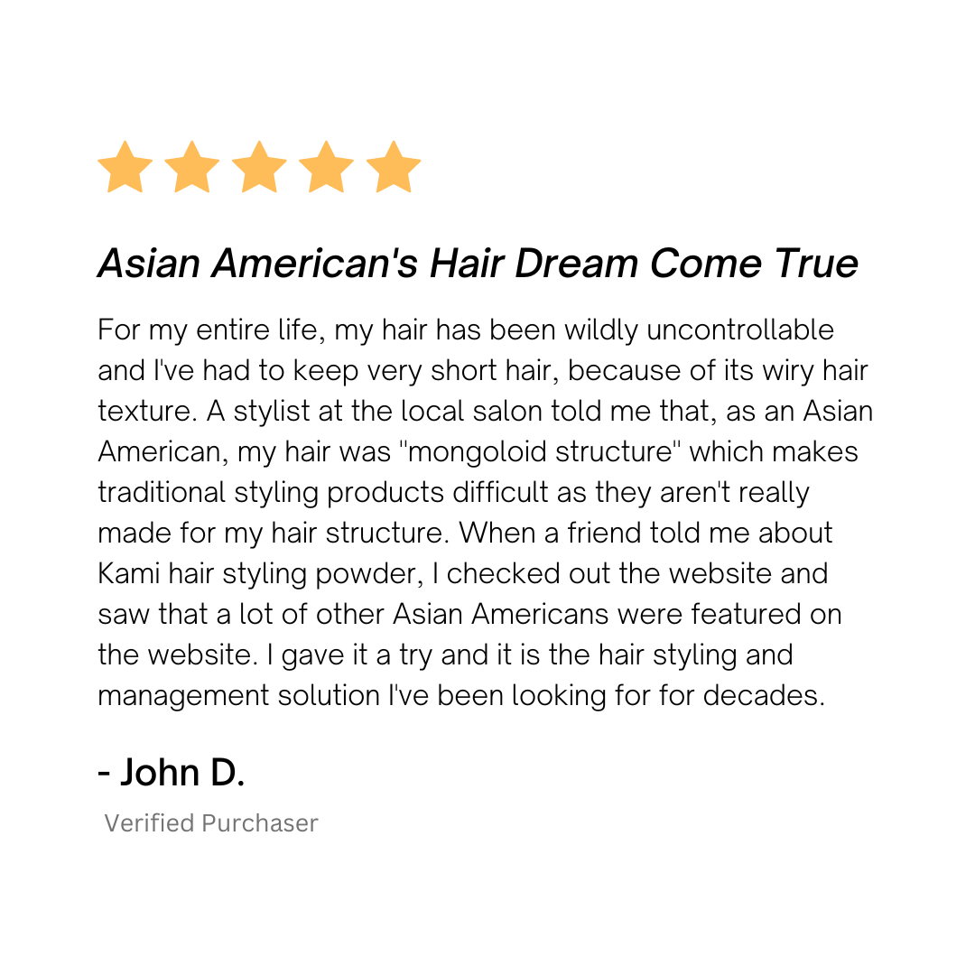 "As an Asian American growing up in the US, I found myself frustrated with my hair. I’ve tried dozens of products and all of them failed to meet my needs. Never strong enough or were too greasy and unnatural looking. I discovered that hairstyling products in the US just aren't made for our hair types.